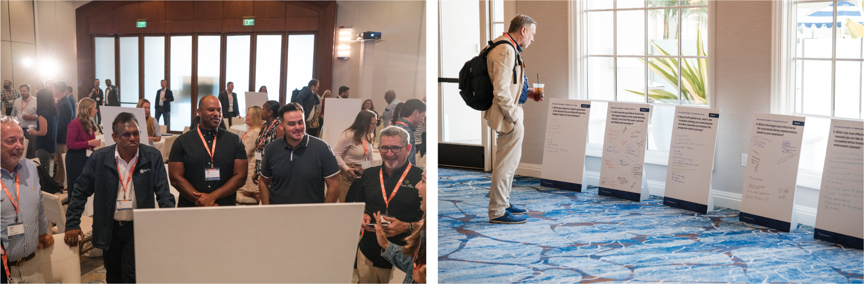 To break the ice, we got everyone up and out of their seats with the first real session “Innovation & Insights: A Collaborative Forum”. In this workshop, attendees split into small groups, each tackling a unique question regarding the rental industry and contributing their own ideas and perspectives. Each group wrote their ideas down on posterboards, which we left out to foster discussion throughout the event.
